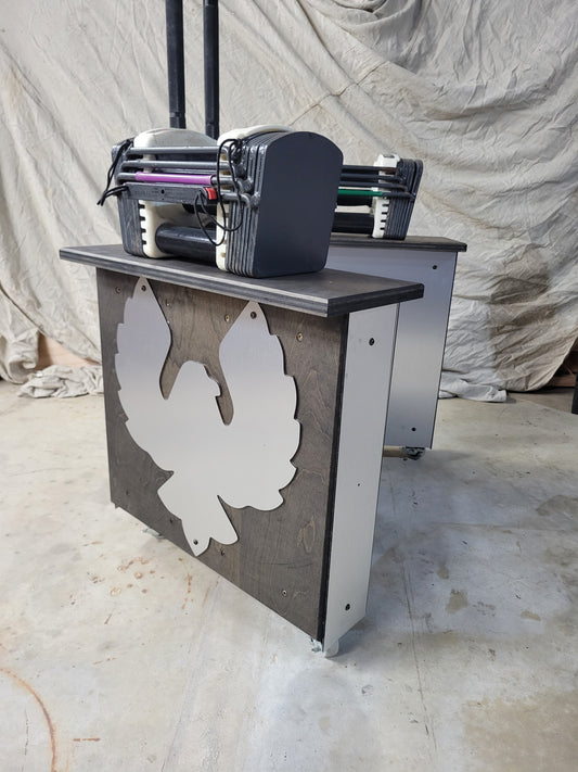 We began with the idea of creating platforms that outlast the typical lifespan and look great. The most common problem we saw was logo's peeling up over time from extreme foot traffic. Our logos are created with epoxy and colored with mica powder to create a vibrant and unique logo that is unmatched and unable to peel up. Our platforms can also be customized to be drop-in inserts for Rogue, Titan and other Platforms.